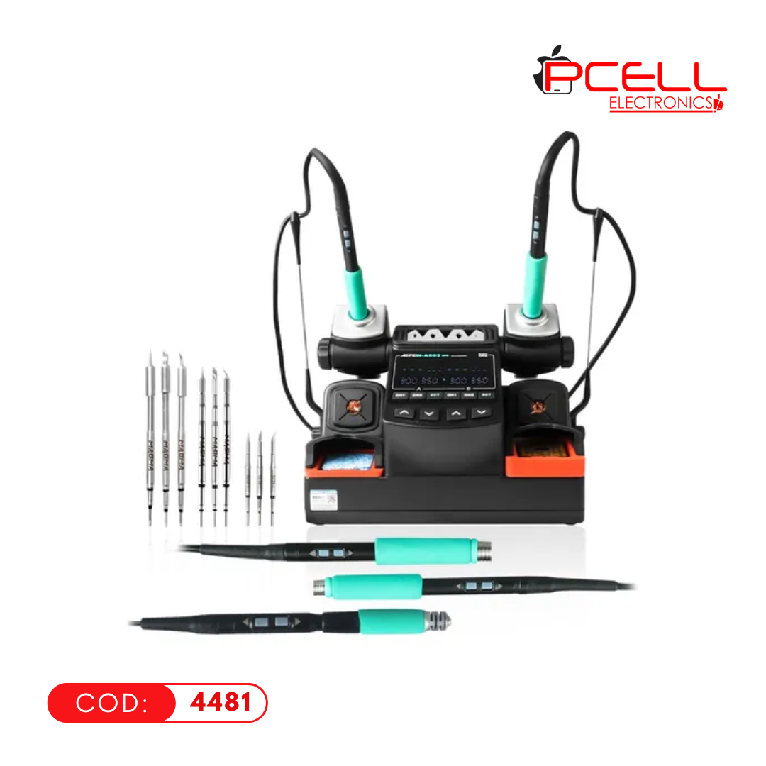 - Otras funciones incluyen manija de control de cable, conversión C/F, interruptor de zumbador, bloqueo de llave, compensación de temperatura, limpieza de tres etapas del núcleo de calentamiento, soporte de manija ajustable, uso de estación doble igual a A902 consistente