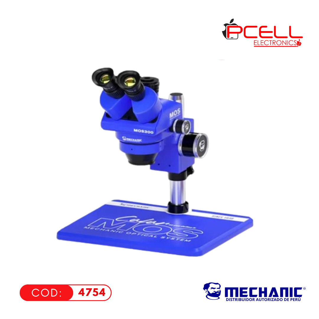 ✅El microscopio trinocular MECHANIC MOS300-B11(Color Azul) es un dispositivo óptico de alto rendimiento diseñado para su uso en el campo de la reparación de teléfonos y otros servicios técnicos. Cuenta con un sistema de zoom continuo que permite ajustar la magnificación de manera fluida para obtener imágenes nítidas y detalladas.